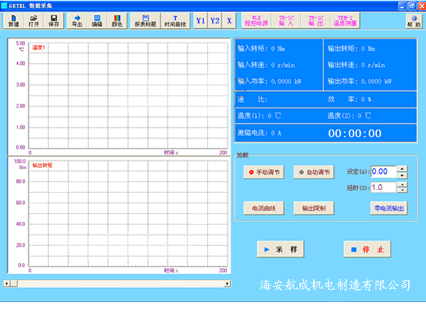 2. 所有儀器通過RS485總線與電腦連接,實現(xiàn)對變速箱的自動加載以及對數(shù)據(jù)的集中采集。實時顯示各參數(shù)與時間之間的關(guān)系曲線,以記錄整過測試過程。